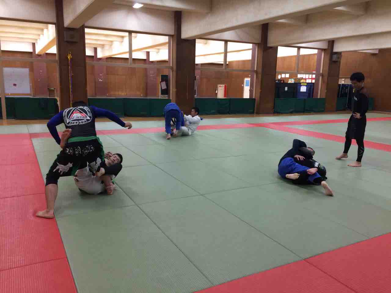 ウォーミングアップ、シングルムーブ、ドリル各種(タックル×2種、引き込み、パスガード7種、ニーオン)、バックポジションドリル、スパー。